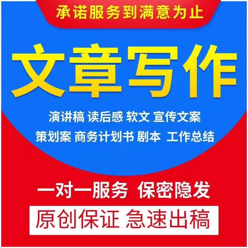 我们公司是一家文案策划及原创文章写作的创意型服务机构! 公司提供各类稿件咨询服务,成百上千的案例,见证着我们的成长。感谢您的选择,我们将用心提供每一次服务,持续为您创造优质的体验! 代写:代写文章 平台,代写文章平台,代写文章,代写稿件,文章代写 征文:征文启事,企业文化,征文代写,写一篇征文500字,公司周年庆征文10篇 演讲稿:演讲比赛稿,爱国演讲稿,安全演讲稿,读书演讲稿,勤学演讲稿,关于诚信的演讲稿,爱岗敬业演讲稿,党史演讲稿,廉洁演讲稿,感恩演讲稿,敬业演讲稿,介绍自己,竞聘演讲稿,竞…